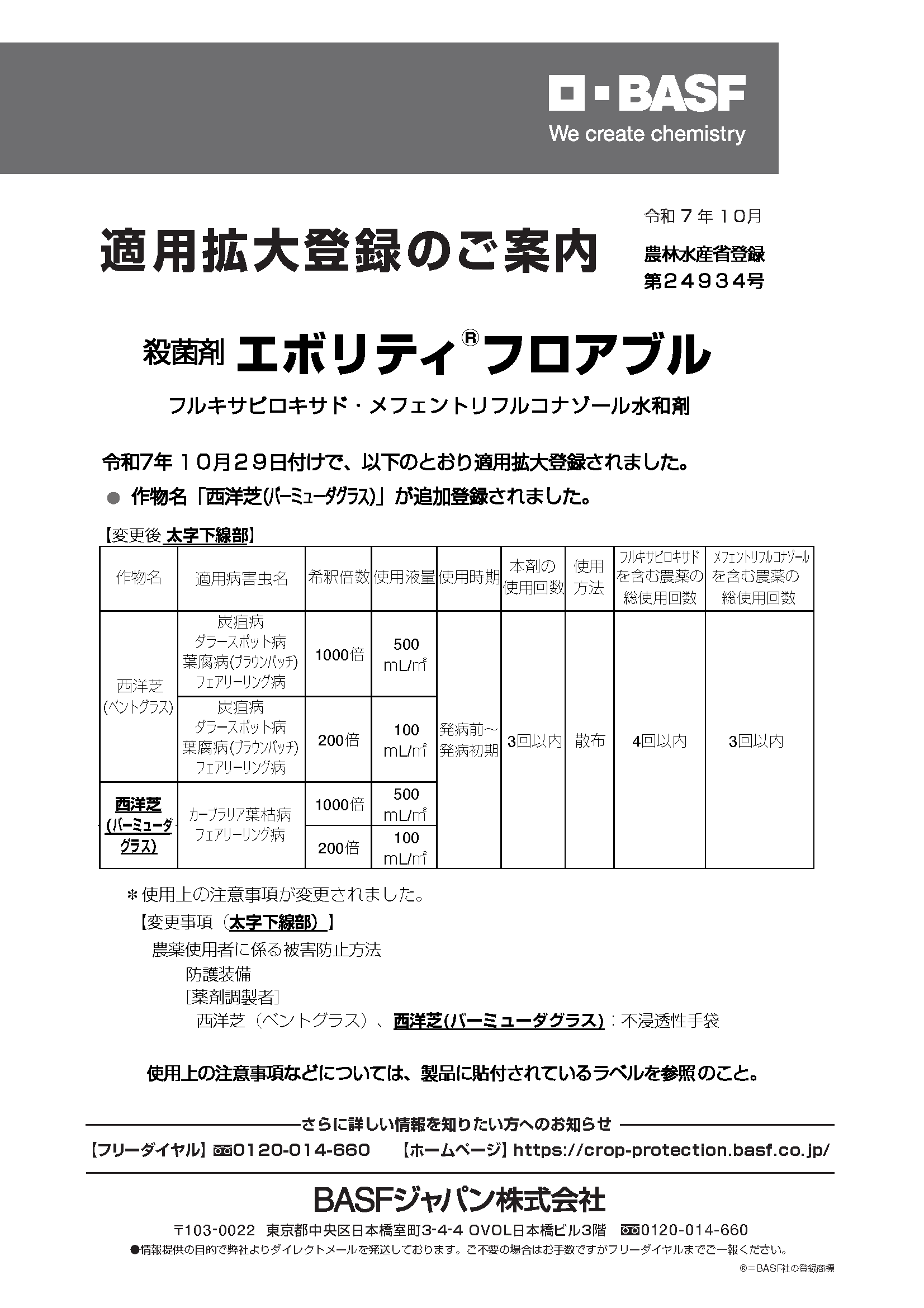 【殺菌剤】 第24934号 エボリティ®フロアブル: 添付PDFのとおり